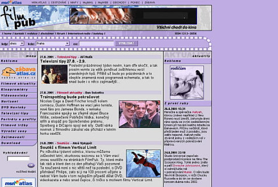 První verze domovské stránky FilmPub.cz po akvizici portálem Atlas.cz. Zdroj: DSL.cz