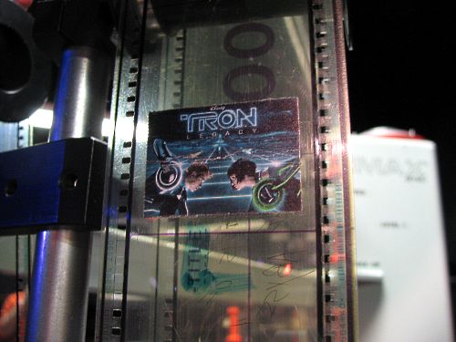 Pro zajímavost: jak si promítači IMAXu pěkně označili startpás IMAX verze Trona. Tyto značky jim zde fungovali k synchronizaci levého pásu s pravým.