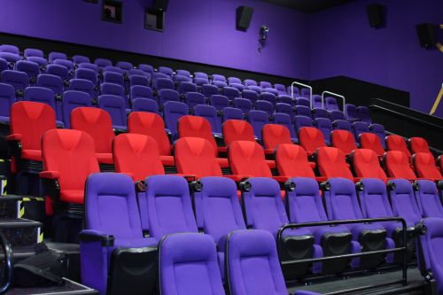 Finální podoba nainstalovaných sedaček. V praxi se v sálech instaluje jen několik málo řad, na které se prodávají vstupenky s příplatkem za 4-D zážitek. Zbylé sedačky jsou klasické, nepohyblivé. Zdroj: FTT Cinemedia