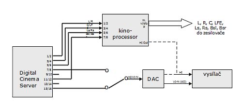 Díky tomu, že digitální kino (DCP) může najednou přehrát až 16 zvukových kanálů, přidání dvou diskrétních kanálů s sebou nenese problém v distribuci filmů v kinech vybavených tomu odpovídajícím zařízením, stejně jako zůstává zachována možnost reprodukce zvukových stop pro zdravtně postižené spoluobčany (zvuková stopa AD - Audio Description, též známa jako VI-N: Visually Impaired Narration).
