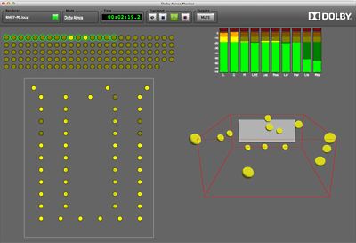 Snímek displeje pluginu postprodukčního zvukového software Pro Tools pro mix v Dolby ATMOS. Kliknutím na obrázek se spustí video s prezentací míchání zvuku v Dolby ATMOS z loňské výstavy ShowEast 2012. Zdroj: Youtube a Insight Media TV1.