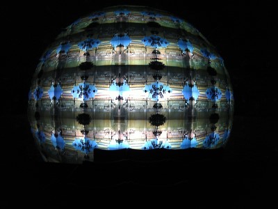 Globus Radúze Činčery funguje na podobném principu s menší odlišností. Základem je čtvercová projekční plocha, v tomto případě zpětná projekce z datového projektoru, ale u menších instalací to mohl být i televizor s větší úhlopříčkou obrazu. Projekční plocha se nachází v horní části vodorovně orientovaného pravidelného komolého čtyřbokého jehlanu tvořeného ze zrcadel. Jehlan je v principu celý sál a diváci sedí na jeho dolní stěně, kde samozřejmě zrcadlo již není. Konstrukce tak dělá iluzi mnohokrát rozděleného obrazu, který navíc díky tvaru komolého jehlanu vytváří optickou iluzi sférické projekční plochy. Jako kdyby se před námi promítalo na velikou kouli. V pražském kině na Můstku nám iluze vytvoří kouli o průměru několik desítek metrů, byť vlastní projekční plocha má rozměry čtverce o hraně necelé dva metry.