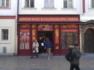 Kaleidoskopické kino se nachází v suterénu objektu v ulici Na Můstku 3. Nad ním pak mohou návštěvníci v rámci jednoho vstupného navšívit dva labyrinty vzdáleně podobné bludišti na Petříně. Prní je tvořený ze zrcadel a druhý z čirých skel. Nechybí ani pokřivená zrcadla, která odporují přísloví "Nadává zrcadlu, kdo má křivou hubu".