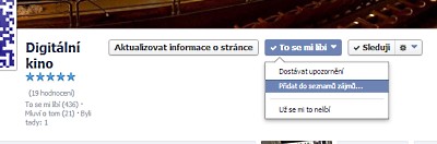 Abychom mohli i nadále všem příznivcům Digitálního kina doručovat příspěvky na jejich facebookovou zeď, je potřeba, aby si každý kromě označení "To se mi líbí" stránku přidal i do takzvaného seznamu zájmů.