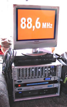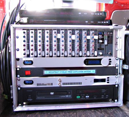 Detail FM vysílačky putovního letního kina AV MEDIA z roku 2008.
