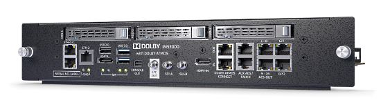 Prvním komponentem je media blok Dolby IMS3000. Tyto mediabloky firma Dolby vyrábí díky úspěšné akvizici výrobce kinoserverů, Doremi. Z dřívějška víme, že mediablok určený přímo k instalaci do “těla” DCI projektoru funguje zároveň jako DCI server s diskovým polem. Nově mediablok v sobě obsahuje kompletní zvukový procesor a to jak pro formáty zvuku 5.1, 7.1, tak i pro již zmiňovaný Dolby ATMOS. S IMS3000 již nemusíme nakupovat samostatně zvukový procesor pro standardní ozvučení, ani Dolby CP850 pro ATMOS. Ušetříme za cenu hardware zvukového procesoru.