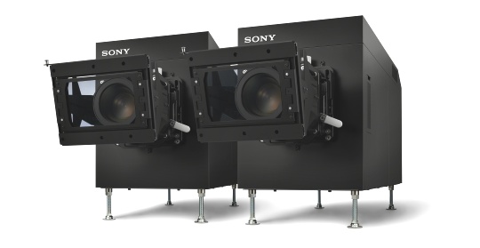Sony SRX-R815DS, tedy v duální verzi a s nasazenými polarizačními filtry pro 3D obrazovou projekci. Každý stroj tak promítá obraz pro jedno oko. Zdroje obrázků: Sony.co.uk/pro/