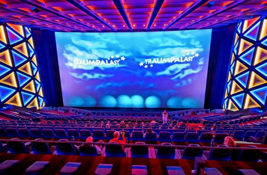 Největší sál IMAX na světě v Leonbergu u Stuttgartu s plátnem o šířce 38,2 metru. IMAX v Praze na Floře má šířku pouhých 23,8 metru. Zdroj obrázku: cinematreasures.org