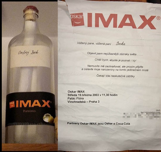 Takto vypadala pozvánka pro novináře na slavnostní zahájení pražského kina IMAX před 20 lety. Autor článku jí má pro svoji originalitu stále schovanou. Foto: autor článku
