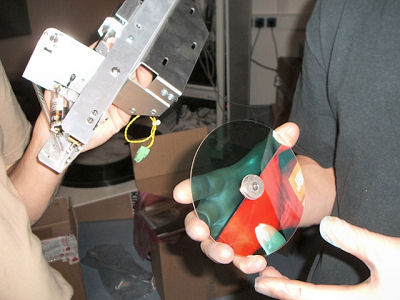 Originální snímek dvousegmentového rotačního filtru pro systém stereoskopického zobrazení Dolby 3D.
