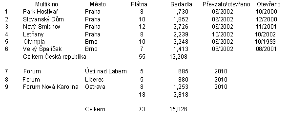 Dodatečně doplněno o přehlednou tabulku současných a budoucích multiplexů Palace Cinemas.
