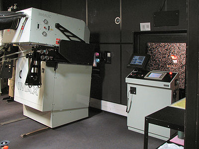 Klasický filmový projektor IMAX GT na 70 mm formát 1570. Snímek z projekční kabiny jediného českého IMAXu v Praze na Floře. Foto: autor článku