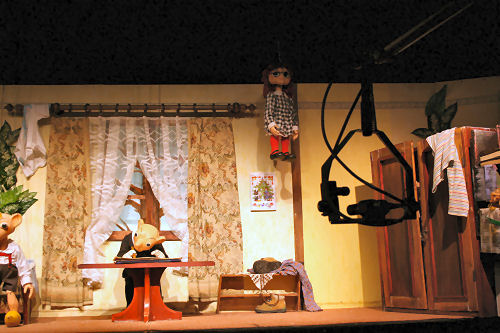 Na počátku bylo velmi důležité zvolit ten správný příběh, který by se dal přenést do 3-D prostoru. Po konzultaci s paní Helenou Štáchovou a produkční společnosti Rolling Pictures jsme zvolili snímek Hurvínkův Mikuláš, který jsme později nazvali příznačnějším názvem pro filmovou scénu Hurvínek na scéně.