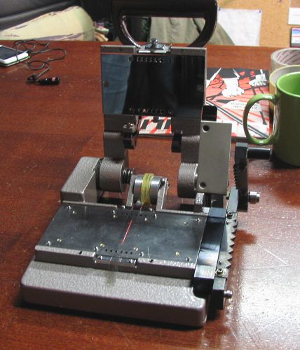 Detailní pohled na dvě filmové dráhy s mechanismem Rolling Loop, který s filmovým pásem zachází podtastně šetrněji, jak klasické strhávací zařízení z maltézským křížem známé z klasických filmových projektorů. Dráhy jsou dvě pro 3-D, každá pro jeden filmový pás pro jedno oko.