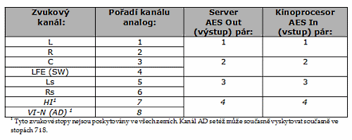 Více podrobností o doporučené instalaci lze nalézt níže. V následující tabulce je zobrazeno rozložení kanálů ve DCP se zvukovým mixem Dolby Surround 7.1: