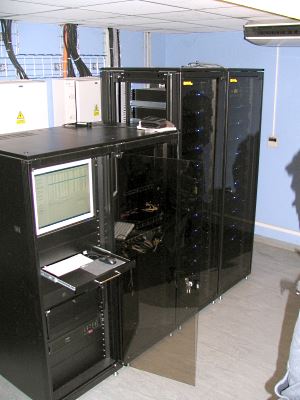 Řídící jednotka celé projekce synchronizující jednotlivé efekty s filmem je umístěna v projekční kabině a zabírá celkem čtyři rackové skříně. Foto autor článku.