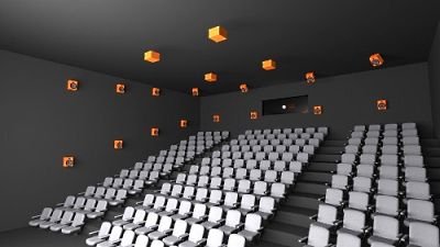 Zatím jediný český sál s 3D zvukovým formátem Dolby ATMOS, sál č. 2 v Premiere Cinemas Park Hostivař. Zdroj: autor článku