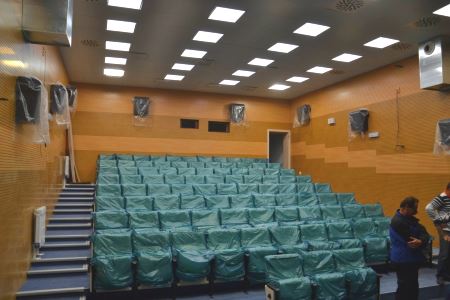 Dokončovaný sál kina v kulturním centru ve Frýdlantu nad Ostravicí ze 4. září 2014. Zdroj obrázku: oficiální webové stránky frydlantno.cz