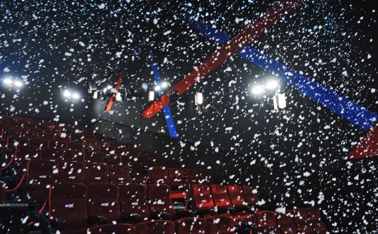 Sál 4DX s absolutní novinkou, kterou nemají ani v Plzeňském 4DX. Simulací husté chumelenice. Zdroj: Cinema City