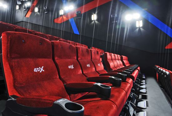 Sál 4DX s nově zabudovanou simulací intenzivního deště. Zdroj: Cinema City
